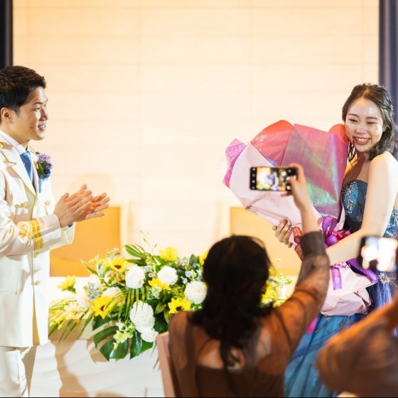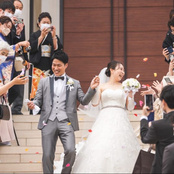 前日から緊張していましたが、当日スタッフの方々が温かい声掛けをして下さったおかげで、挙式入場時には緊張もほぐれていました。