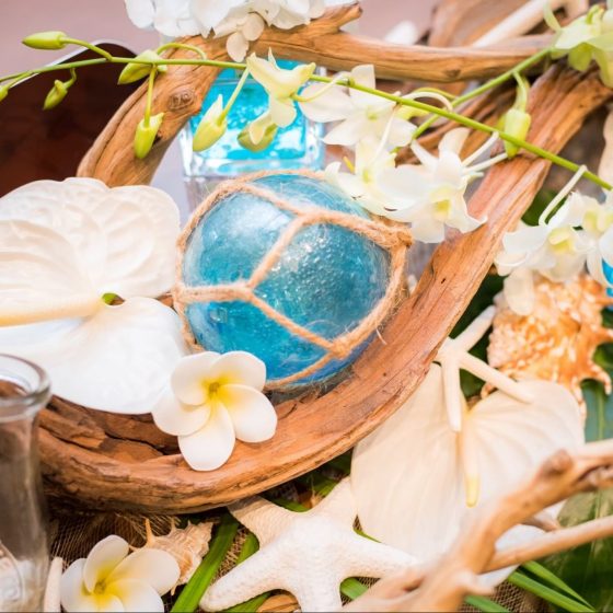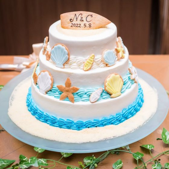 「海」「南国」を表現したかったので、席札や席次表、フラワーシャワーやオープニングムービー等も手作りにして自分たちのイメージをとにかくたくさん詰め込みました!