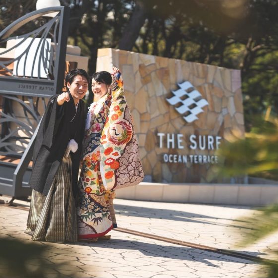 お色直しでは和装を着る!と最初から決めていたのですが、サーフの雰囲気と海と和装のバランスもかっこよくてお気に入りでした!