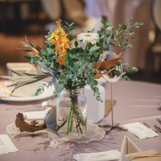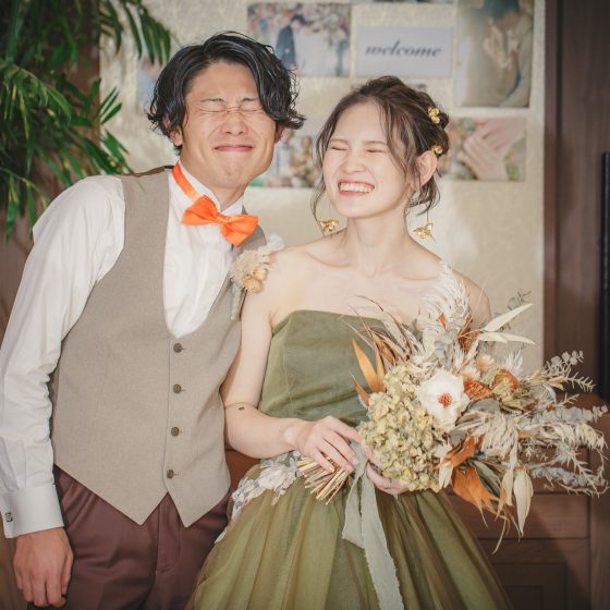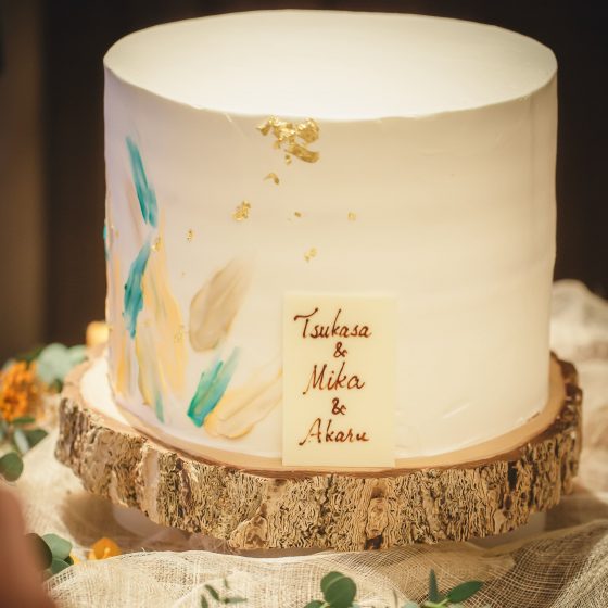挙式のテーマカラーを、オレンジ、ブラウン、グリーン、ホワイト系でまとめて統一感を出しました!またウェディングケーキは子どもも参加できるように、一緒にアラザンをかけて完成させたり、2人目を授かっていたので、テラスでジェンダリービールバルーンをしたりしたのですが、予想以上に盛り上がりました!またプロフィールブックやエスコートタグなども手作りしたり、ケーキ台も木の切り株にしてみたり会場の雰囲気にもこだわりました!当日も私たちだけではなく、ゲストの方々にも楽しんでもらえる企画を入れたり、友人代表も1人に決めず、インタビュー形式にしたりもしました!