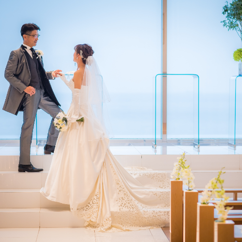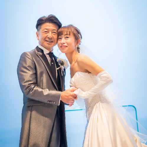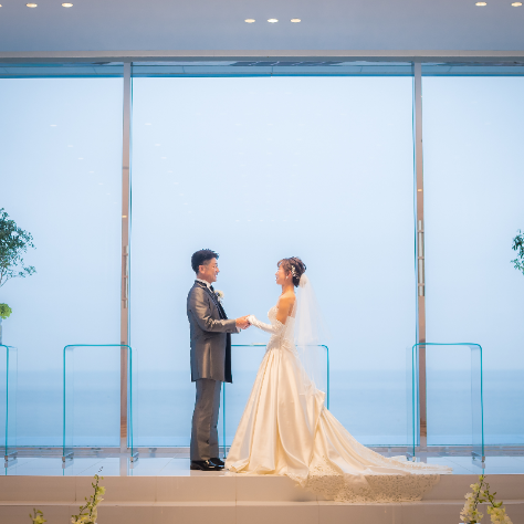 2人とも海が大好きで、出会ったのも海だったので、海が見える会場を探していました。サーフは求めていたロケーションにぴったり合って、会場やスタッフさんの雰囲気も良く、すぐに気に入りました。試食会で頂いたお料理もとっても美味しくて、レストランでの披露宴も出来るとのことだったので、家族だけの少人数で予定していた私達には最適だと思い、すぐに決めました。