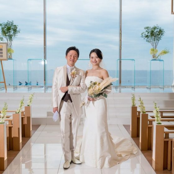 夫婦ともに海が好きで、海辺の近くの結婚式会場を探していました。