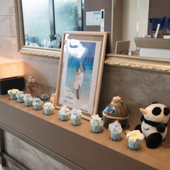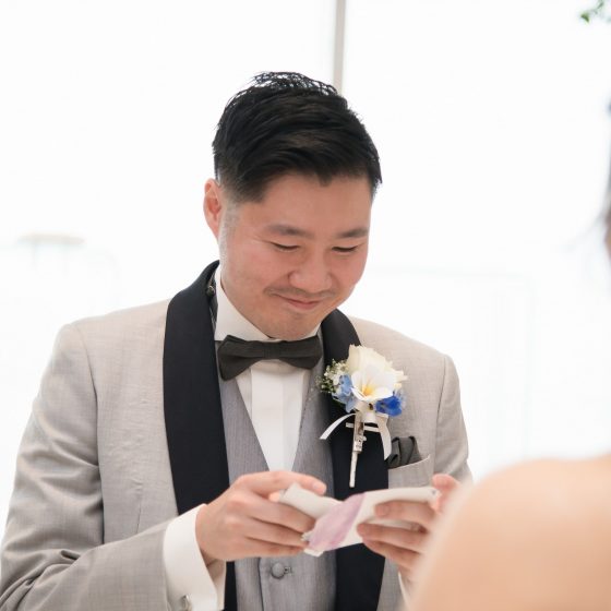 海辺のテラスと挙式会場がとても素敵で、夫婦共に海が好きだからここで挙げたいと思いました。また、披露宴も少人数でも可能で、参列者全員の顔がよく見えること、1人ひとりとの時間がゆっくりもてるなと思いました。