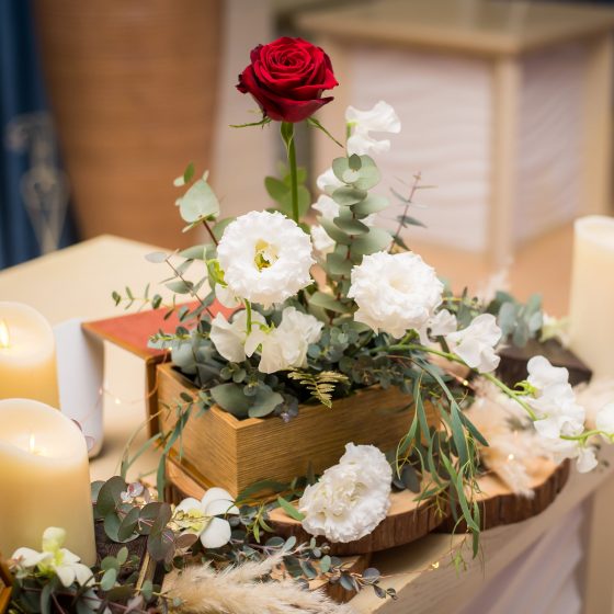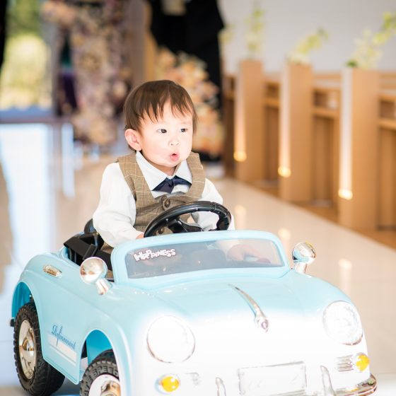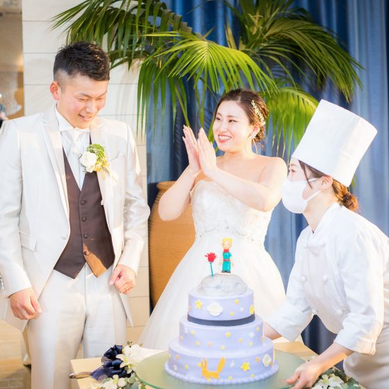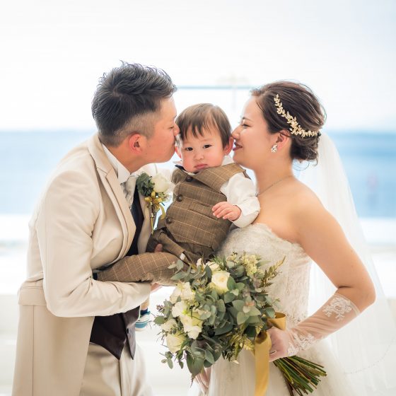 〜平和な海の王子さま〜は息子の名前の由来と、新婦が好きな本のタイトルをかけたものです。息子の名前に、穏やかで平和な海を表す漢字が使われているので、〜平和な海の王子さま〜とサブタイトルで付けました。また、挙式の3日前が息子の1歳のお誕生日だったので、息子も主役にしたかったからです。