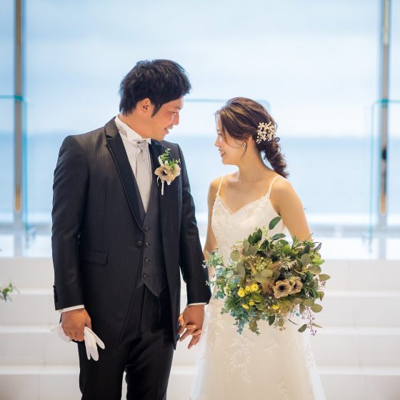 元々は海外で挙式をしたかったのですが、コロナで難しく断念かな、、と思っていた時に出会ったサーフの挙式会場が1番の決め手でした。見学の日は曇りでしたが、それでも光が入ってとっても素敵でした!あとは、目の前に広がる海と会場のオシャレな雰囲気がすごく気に入ったからです!