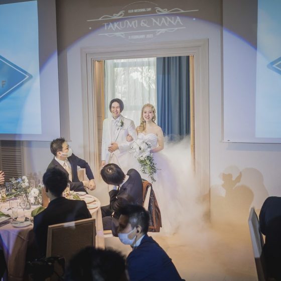 また演出映像では、プロフィールムービーの代わりに現在の自分たちの日常を放映しました。映像会社様には子供を含めた家族としての私たちを素敵に撮って貰えました。