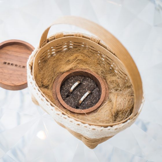 2人の共通の趣味がキャンプなので、会場にキャンプギアをたくさん飾りました!