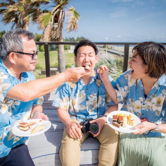 いろとりどりのアロハシャツで華やかに、かつリラックスできる空間作りができたと思います。