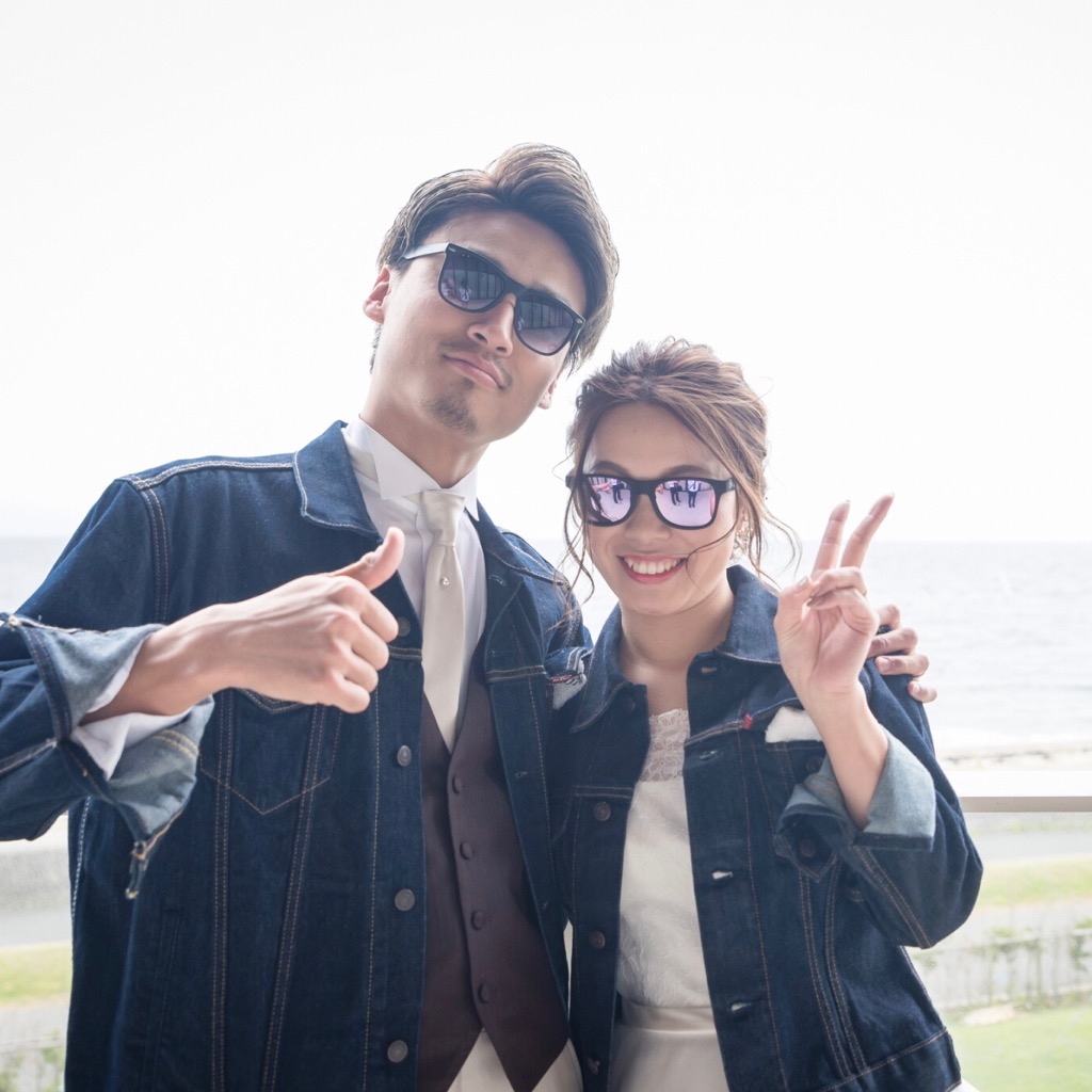 披露宴でもGジャン、スニーカースタイルで登場し、カジュアルさを大事にしました!