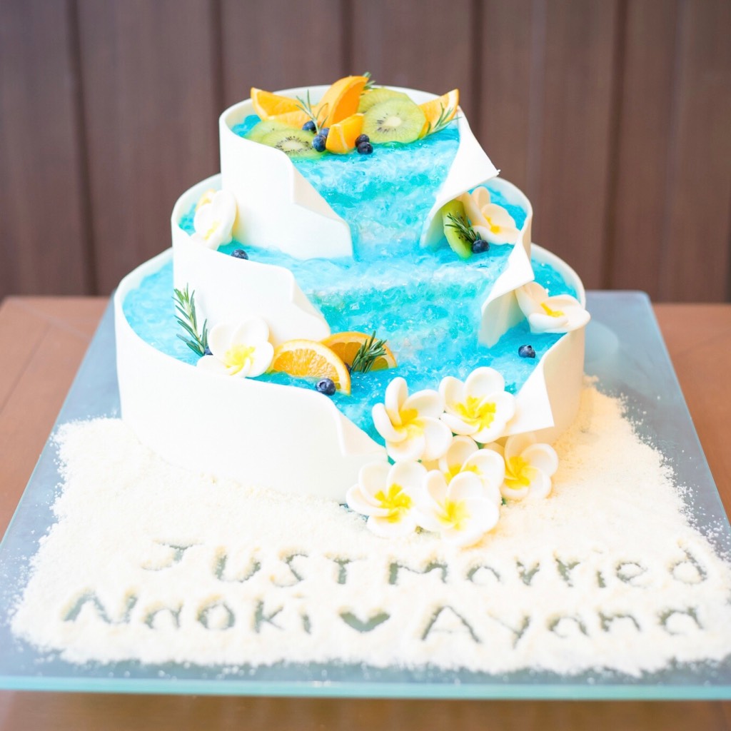 ウエディングケーキもサーフさんのロケーションに合う