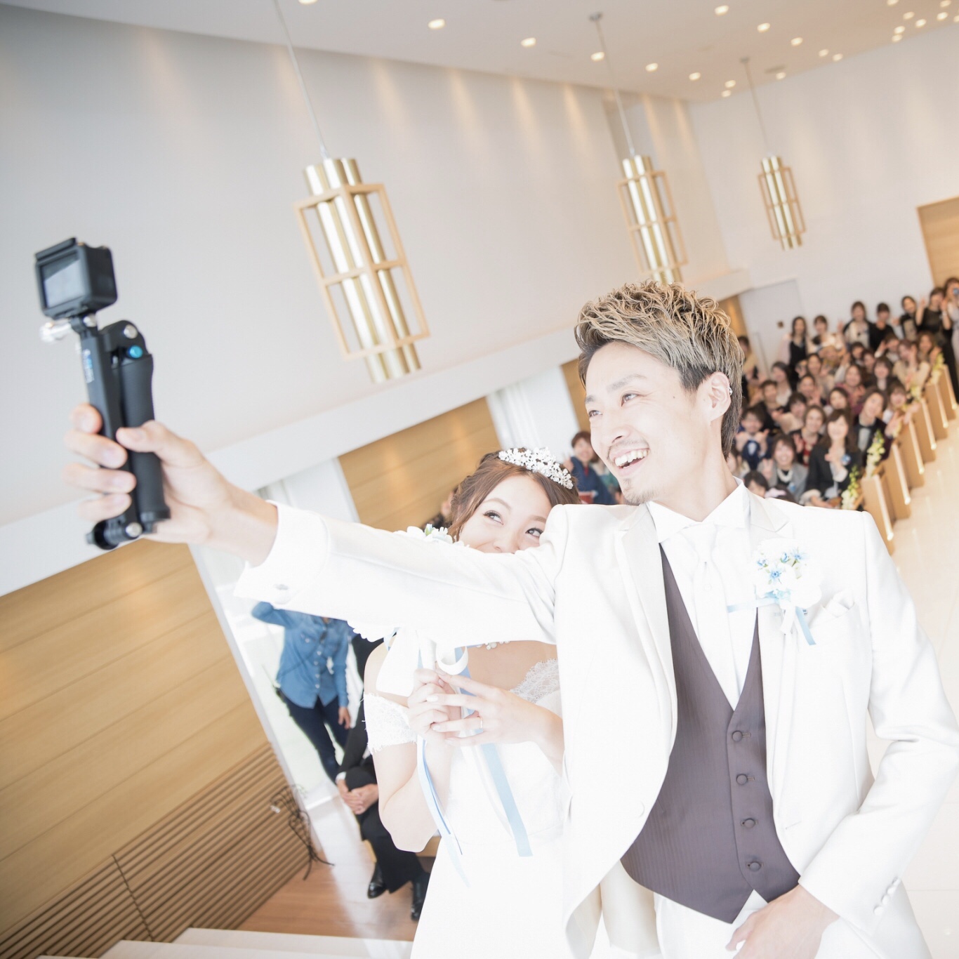 GoPro撮影も挙式の中で時間をとり、ゲスト、スタッフさんみなさんに写真に写ってもらい、思い出の写真が撮れました!