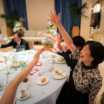 披露宴の会場では、ゲストの方と近い距離でお話ができて、