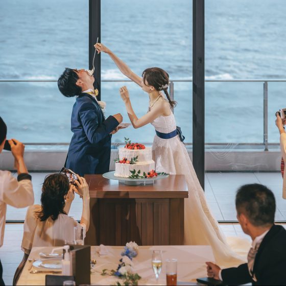 親族だけの式だったので、挙式・披露宴ともにゲストにも参加してもらえるようなイベントを用意して親族との時間を大切に出来るようにしました。また、ゲストにサーフのおいしい料理を食べてもらいたかったので、料理長オススメのプランにしました。