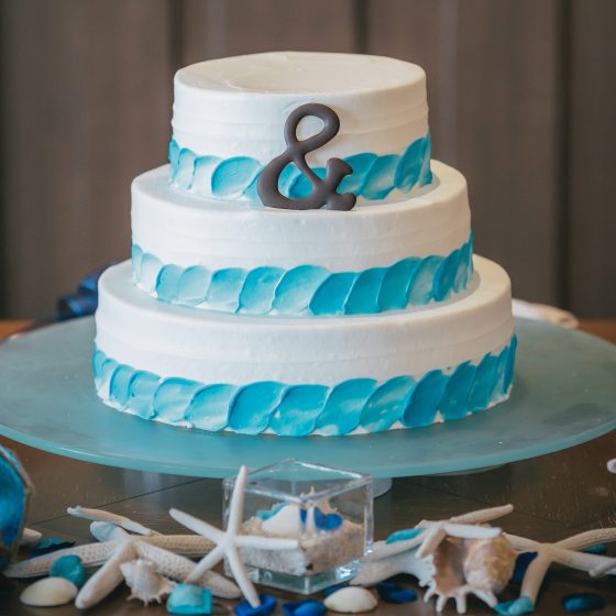 自分たちが主役だけどゲストファーストで楽しんでもらえるように藤本さんとも打ち合わせをし、途中から今井さんも加わっていただきよりゲストファーストな打ち合わせにできるようにしたところ。ゲストファーストだけどサーフで結婚式をするということもありサーフの印象カラーを取り入れてもらいそれを会場全面に出してサーフの方々も楽しんでもらえるようにしたところ。