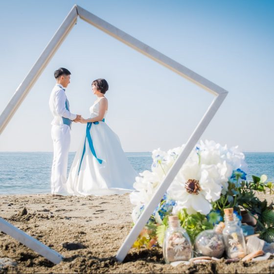 サーフがハワイをイメージしていることと、新婦もハワイが好きということもありハワイをできるだけイメージしました