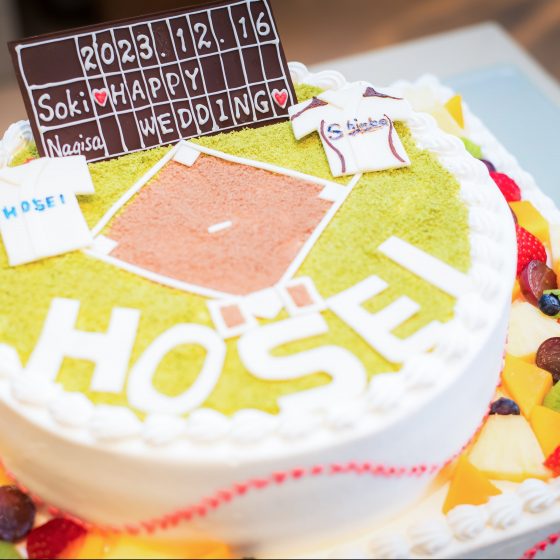 ウエディングケーキを野球の球場をイメージして作ったりしました。