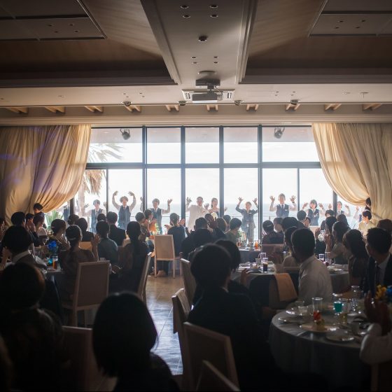 披露宴の会場からも海が見えて
