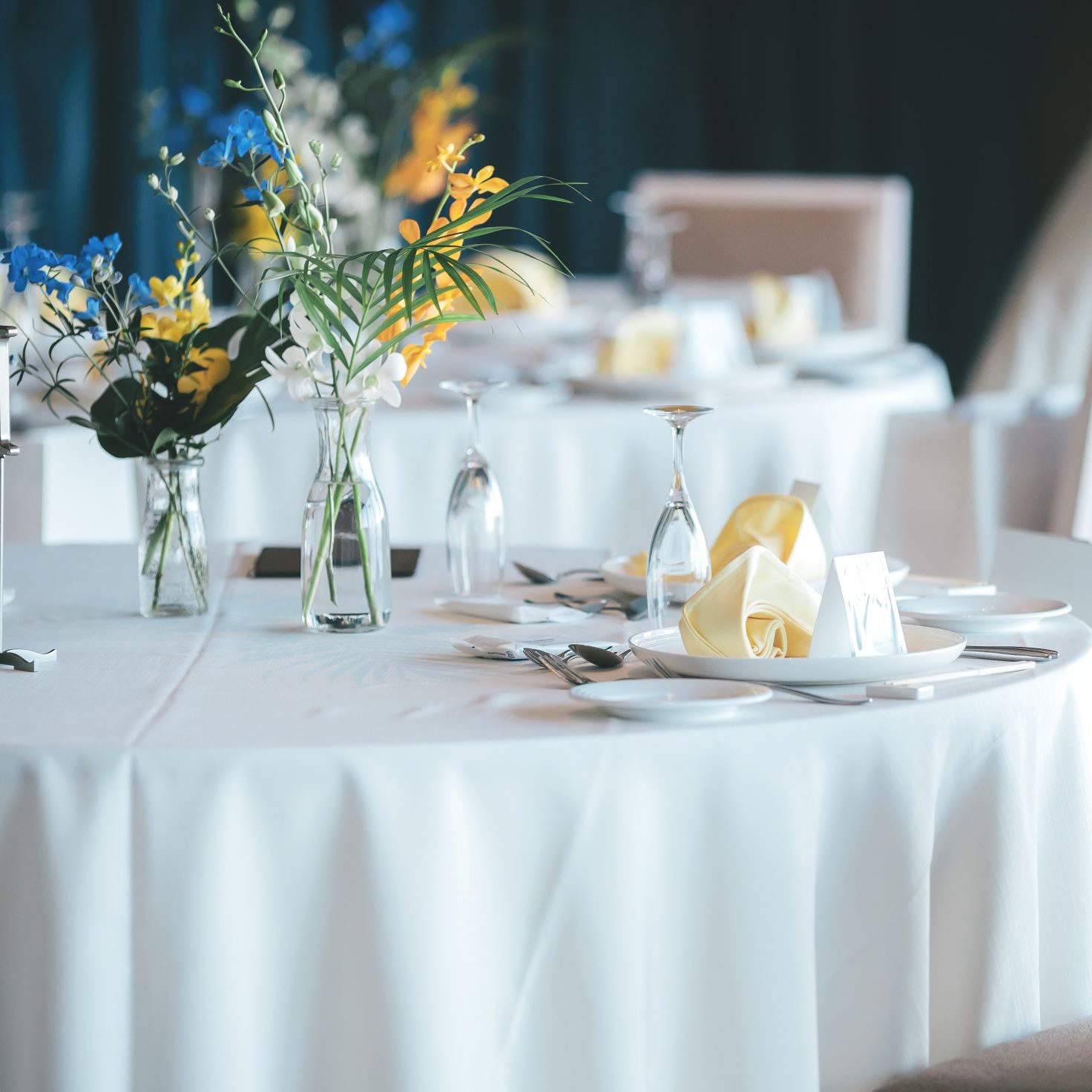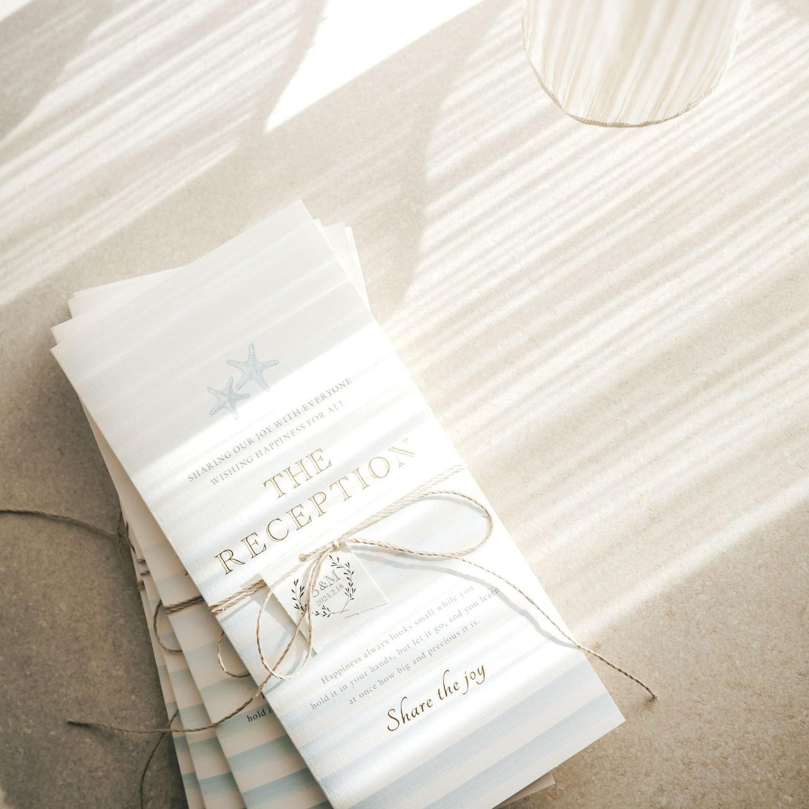 マリンテーストをイメージした会場の装飾やドレスの色にしました。