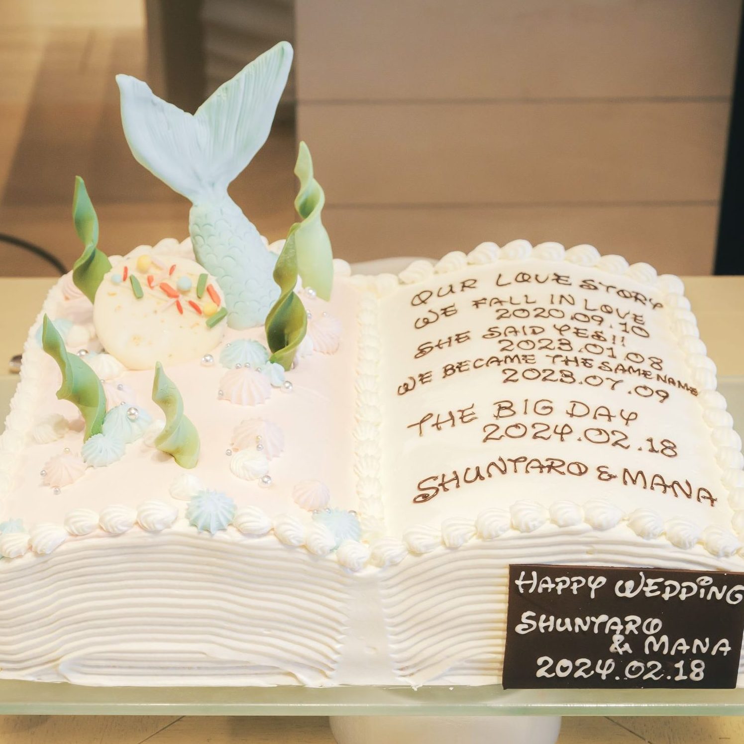 形にもこだわったウエディング生ケーキを作っていただきました。