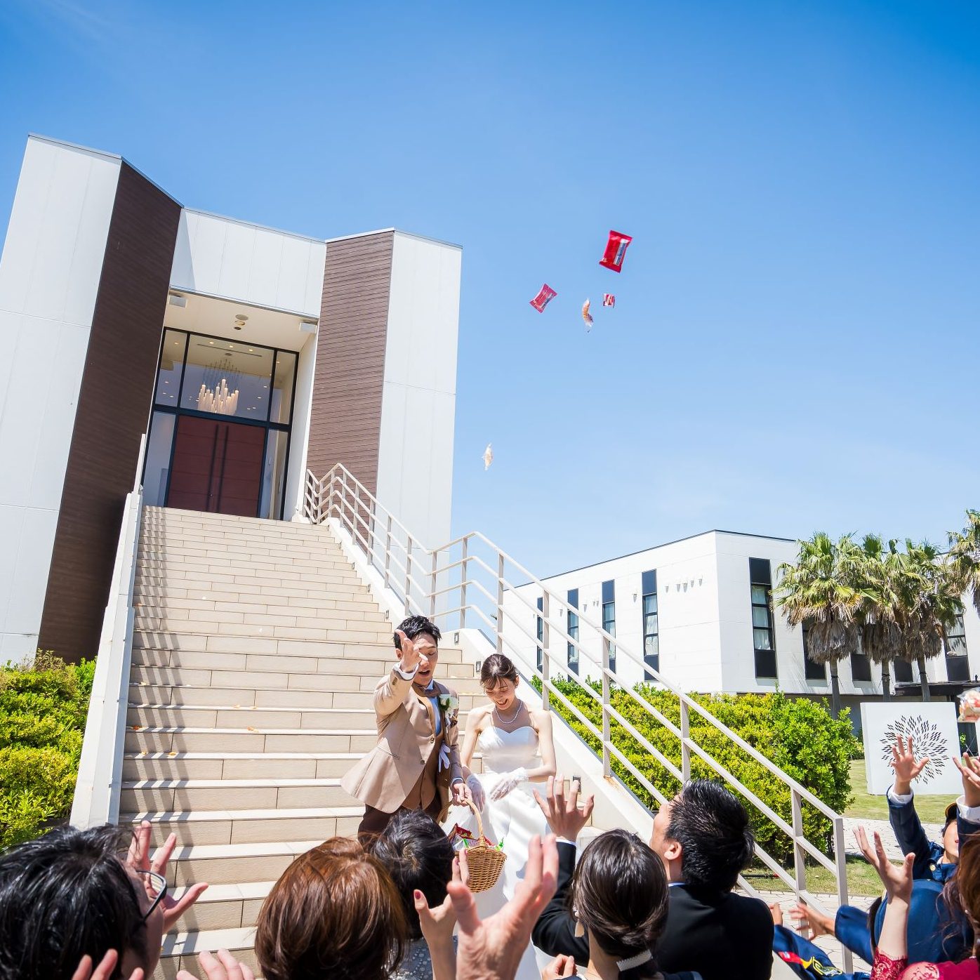 挙式会場を初めて見た時に、海がとっても綺麗で
