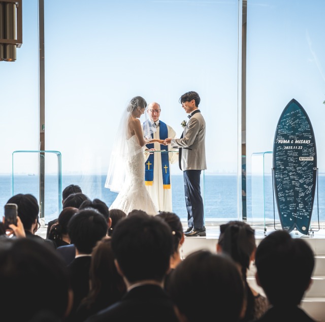 夫婦の趣味がサーフィンなので海が見える式場だと嬉しいなという気持ちでした。