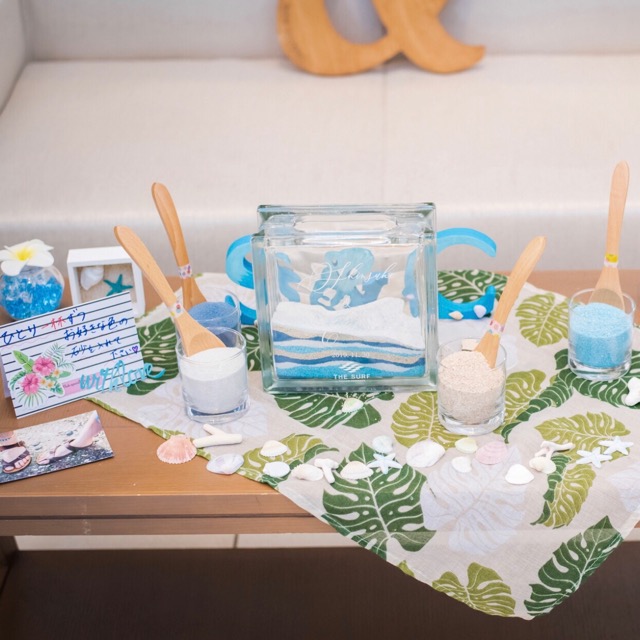 装飾、テーブルアイテム、髪飾り、などなど、、全てに海にアイテムにしました!