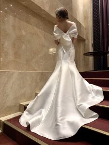 バックに並ぶくるみボタンが女性心をくすぐる一着