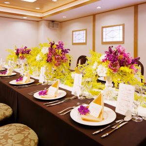 同じくひとつのテーブルを皆様で囲むスタイルですが、和婚らしいコーディネートに仕上がりました