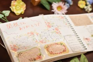 メッセージカードを一冊の本にまとめて飾ってくださりました