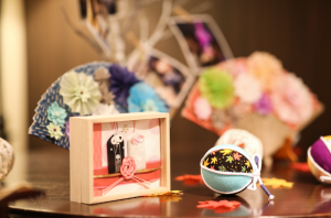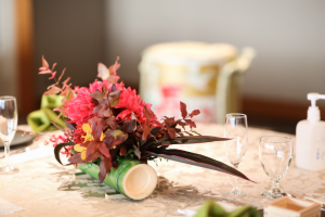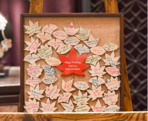 受付でゲストの方々に紅葉をイメージしたチップをお配りし