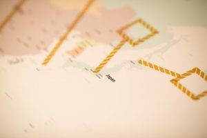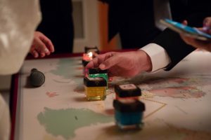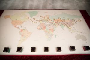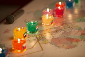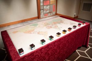 お二人が行ったことのある国の国旗を貼り