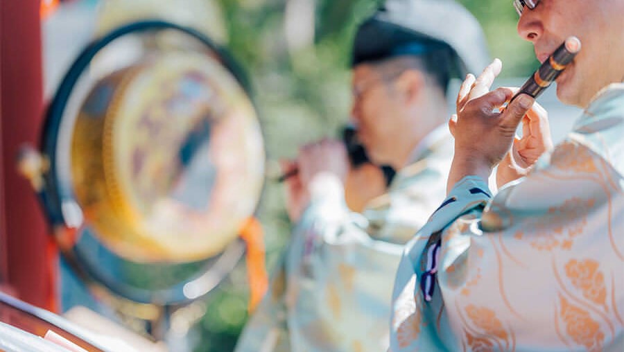 神前式では「雅楽」という伝統音楽の中