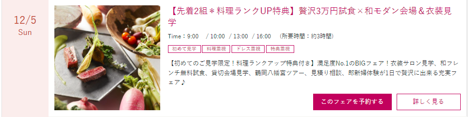 【先着2組*料理ランクUP特典】贅沢3万円試食×和モダン会場&衣装見学