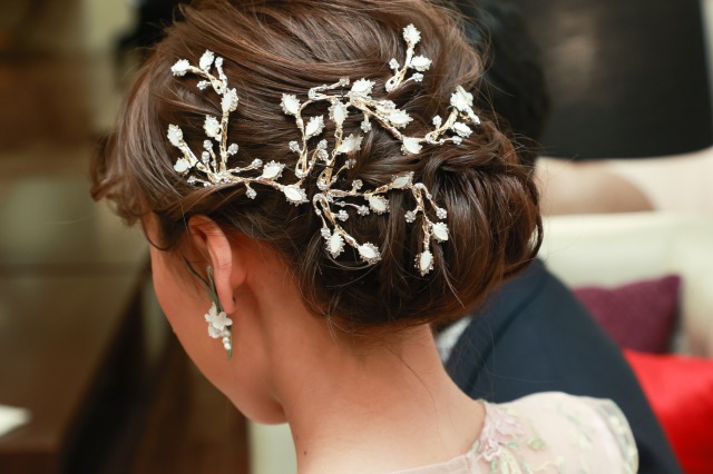 お衣装に合わせたやわらかな雰囲気のヘアスタイル