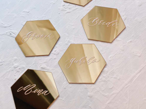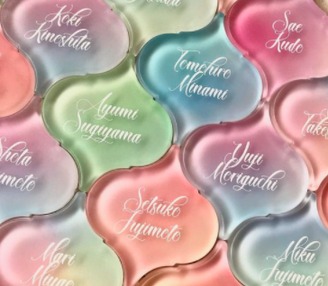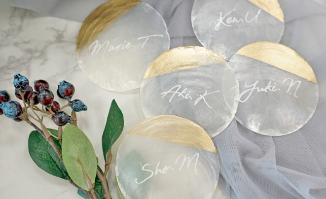 貝殻に手書きでお名前をお入れするカスピシェル席札