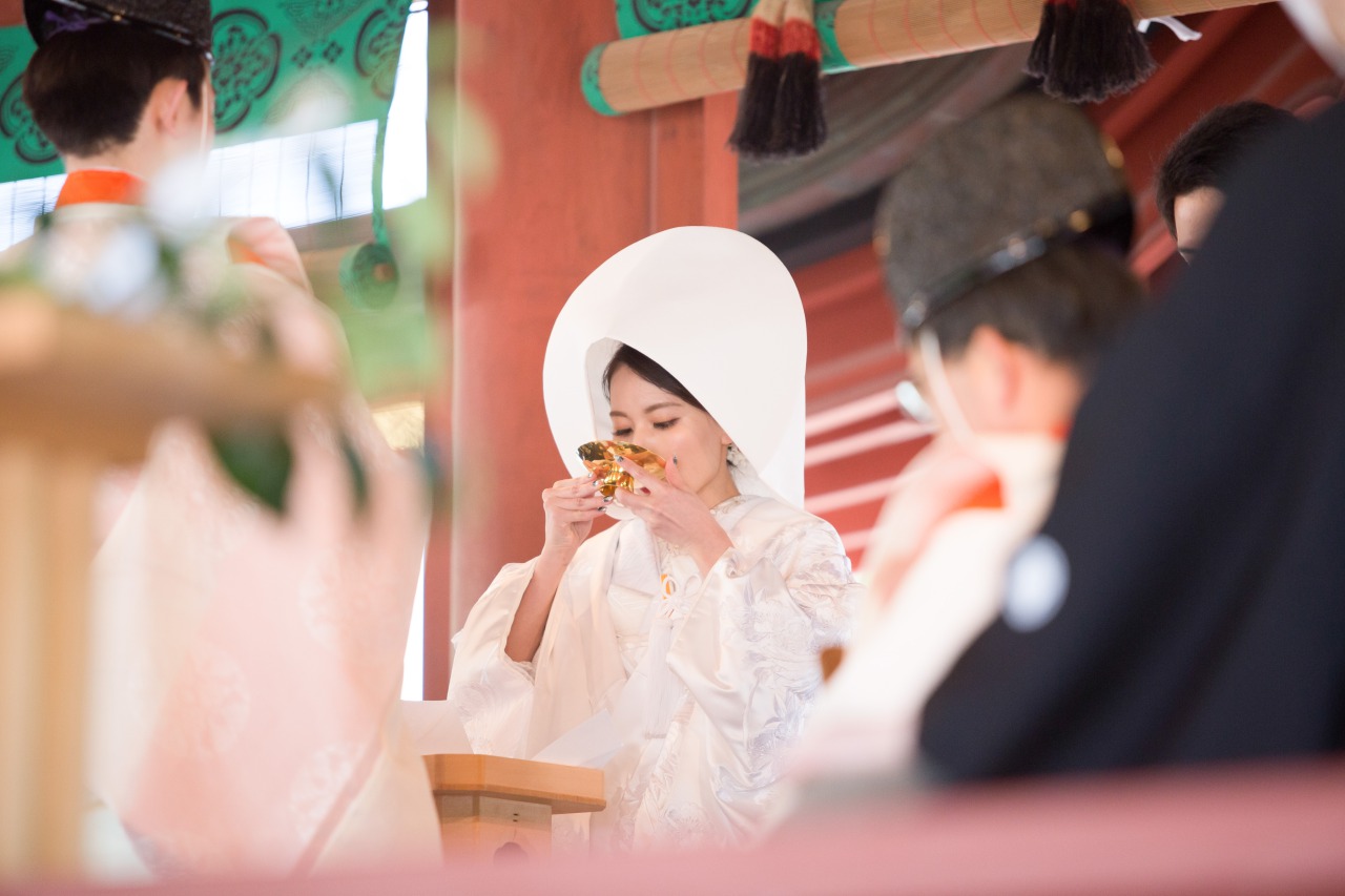 神前式の儀式の一つ「三々九度(さんさんくど)」
