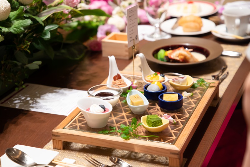 ゲストの皆様のテーブル上にブッフェをお持ちし