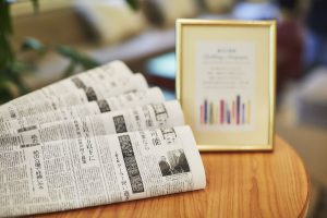 KOTOWAでは、ご親族様のお控え室に「新聞」をご用意させていただいております。