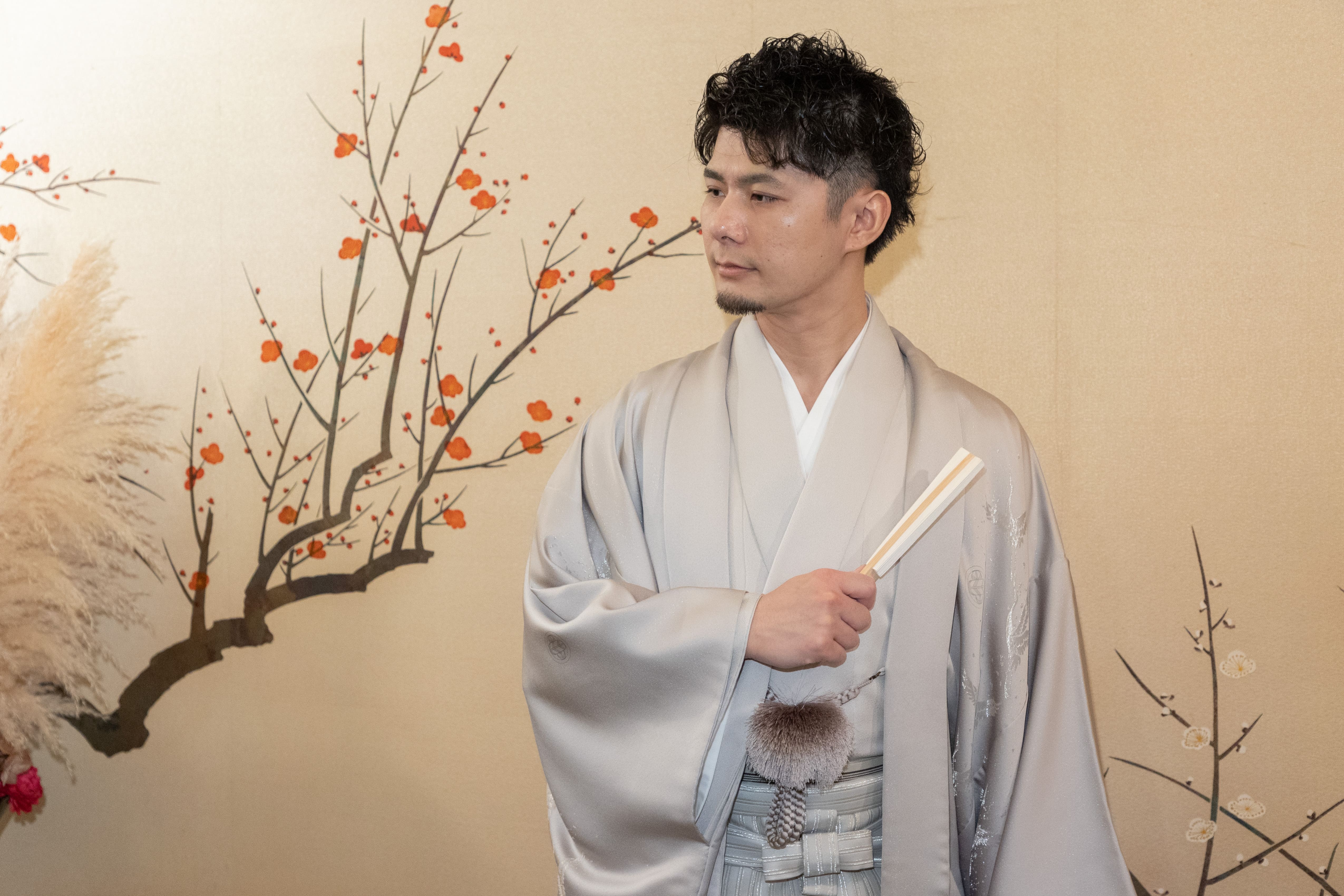 ご新郎さまも黒紋付からグレーの紋付へお色直し