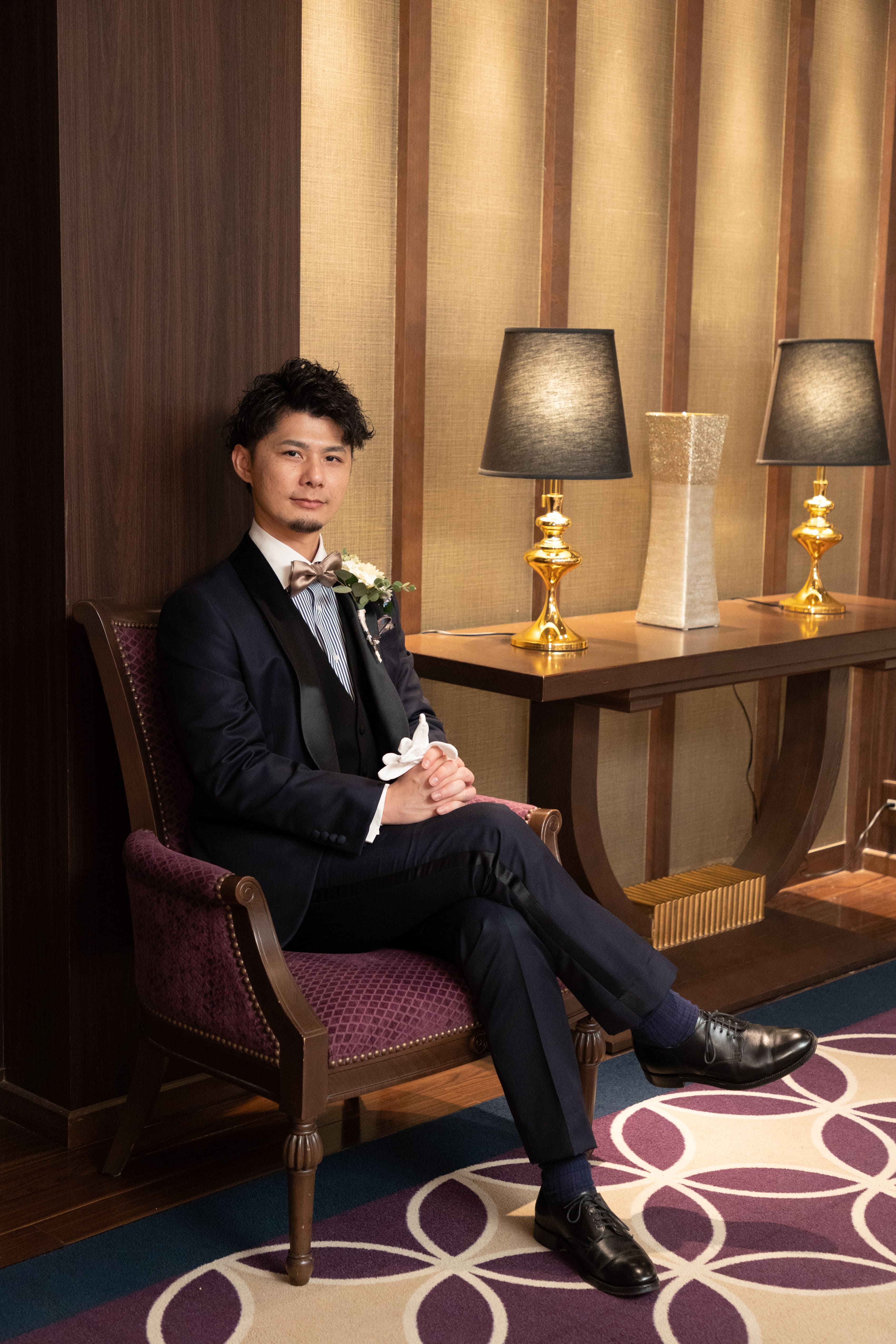 筋トレが趣味の新郎さま、紋付のお似合い具合がさすがです!
