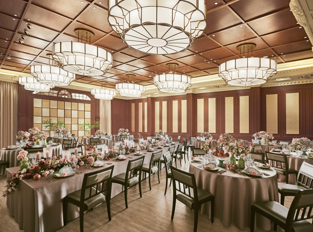 「彩り美しい人生を」という願いをこめた「SAIBI(彩美)」。広々とした空間に、和と洋のエッセンスをちりばめたエレガントなバンケットです。和装にも洋装にも美しく調和しおふたりらしさも盛り込めるコーディネートが叶ったり、巨大な三面スクリーンを備え、迫力のあるムービー演出や最新のプロジェクションマッピング演出にも対応しております