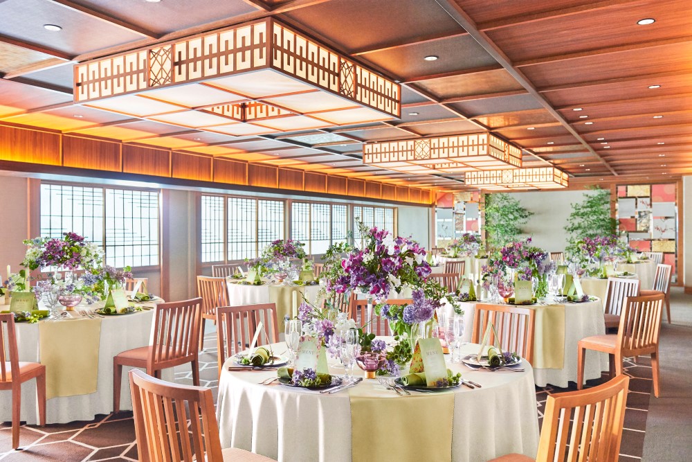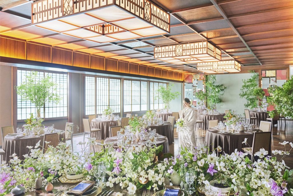 おふたりが歩む「みずみずしく麗しい人生」を表現した「MIZUHA(瑞葉)」。アットホームな雰囲気のパーティーにぴったりの空間です。西陣織のウォールアートや格子細工など和のテイストにこだわり抜いた空間でおふたりのこだわりを形にした、プライベート感に満ちたひと時をお過ごしください。