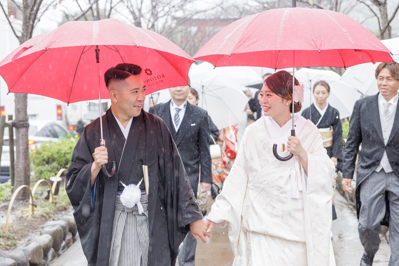 KOTOWA 鎌倉 鶴ヶ岡会館では、鶴岡八幡宮へのご移動をスタッフが2名体制でサポートいたします。鶴岡八幡宮に到着後は、鶯吟亭様のスタッフが親族控室までご案内をさせていただきます。KOTOWAを出発してから挙式が結び再びKOTOWAにお戻りいただくまで、ご親族様だけでご移動される時間は一切なく、皆様がご安心してお過ごしいただけます。どうしてもご移動の多くなってしまう外式ですが、迷うことなく挙式会場にご到着していただくことができます。また、万が一トラブルが発生した際もスムーズに対応させていただきます。