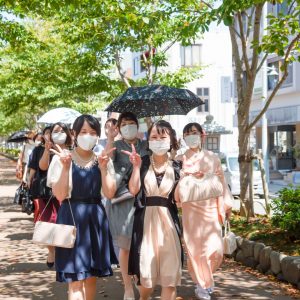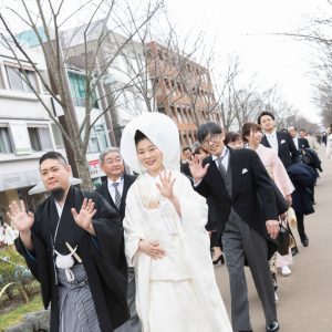 新郎新婦様を先頭に段葛を歩いて当館にご帰館いただきます
