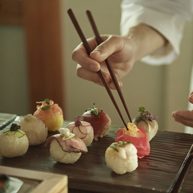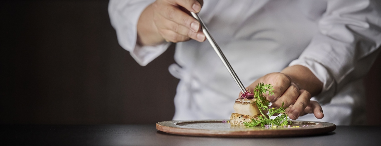 大切なゲストに心からの感謝を伝え、ゲストとおふたりに美味しい記憶を紡いでいく"料理"。KOTOWA 鎌倉 鶴ヶ岡会館では、味や見た目の美しさはもちろん、香りや食感、音にまでこだわった、五感に響く一皿をご提供いたします。