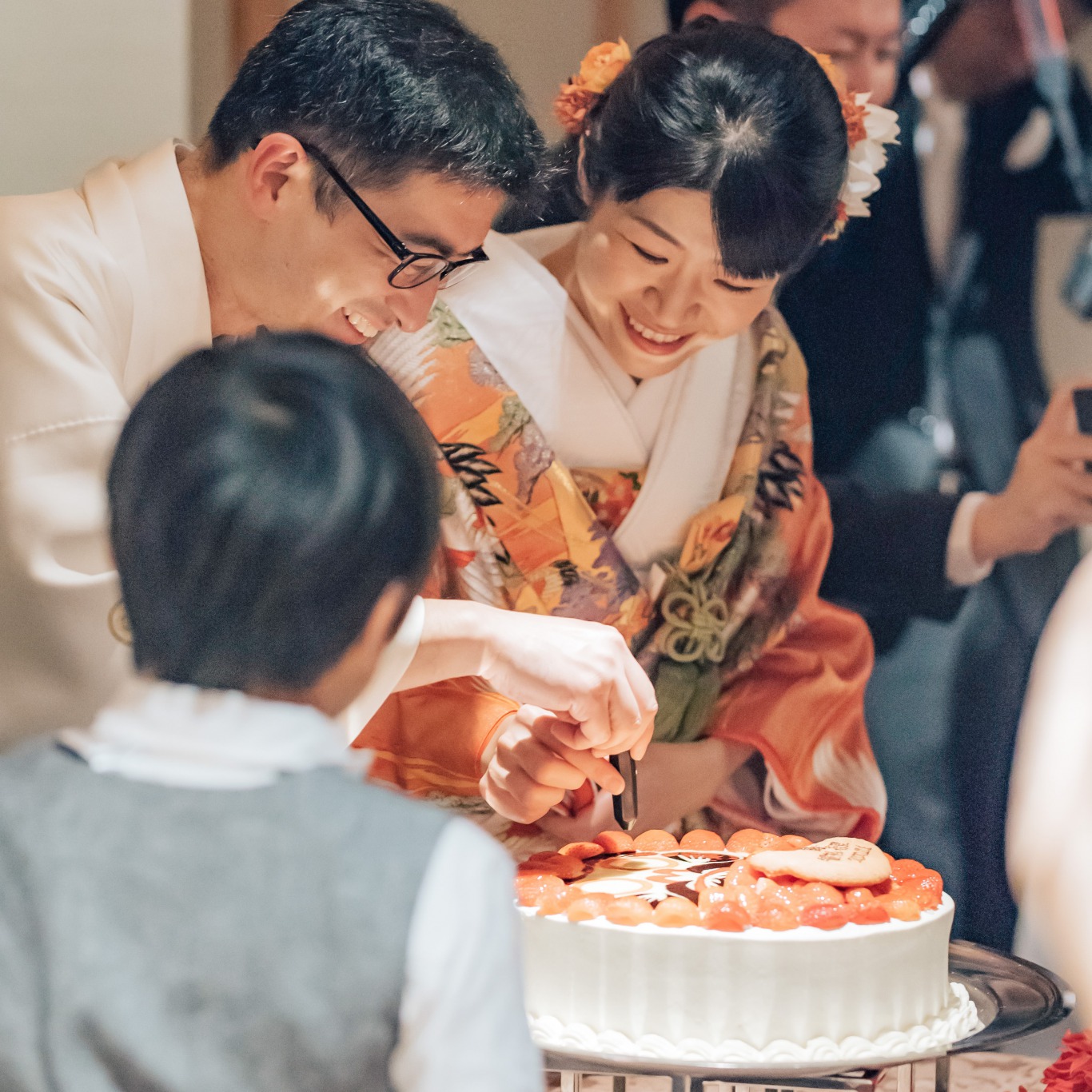 子供も含めてみんなが楽しめ、飽きの来ない披露宴になるように考えました。乾杯は、小学生の甥っ子に、ケーキ入刀ではなく、ウェディングケーキをだるまにして、目入れを姪っ子に、ファーストバイトの前に、兄弟夫婦にやってもらうなど、ゲストみんなが参加出来るスタイルにしました。