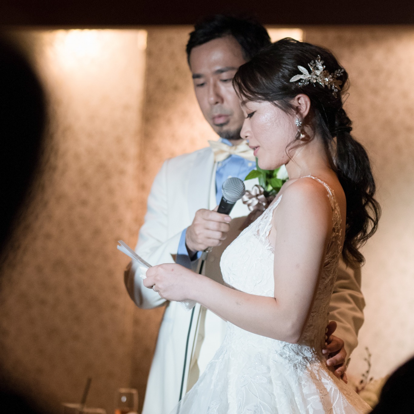 当日の感想は本当に感無量の一言でした。結婚式をあげて今までたくさんの方々に支えられてきた事を実感し感謝の気持ちを伝える事が出来ました。
