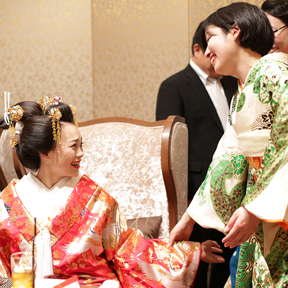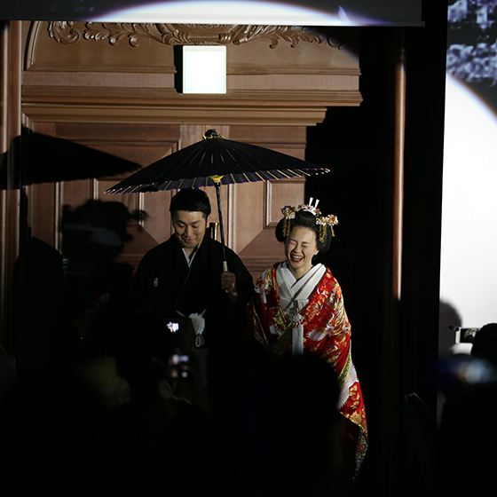 他にも披露宴入場で着ていた色打掛をお色直し後に会場入り口に飾ったり、オープニングの映像や音楽、お花など細かな要望も取り入れて下さりました。