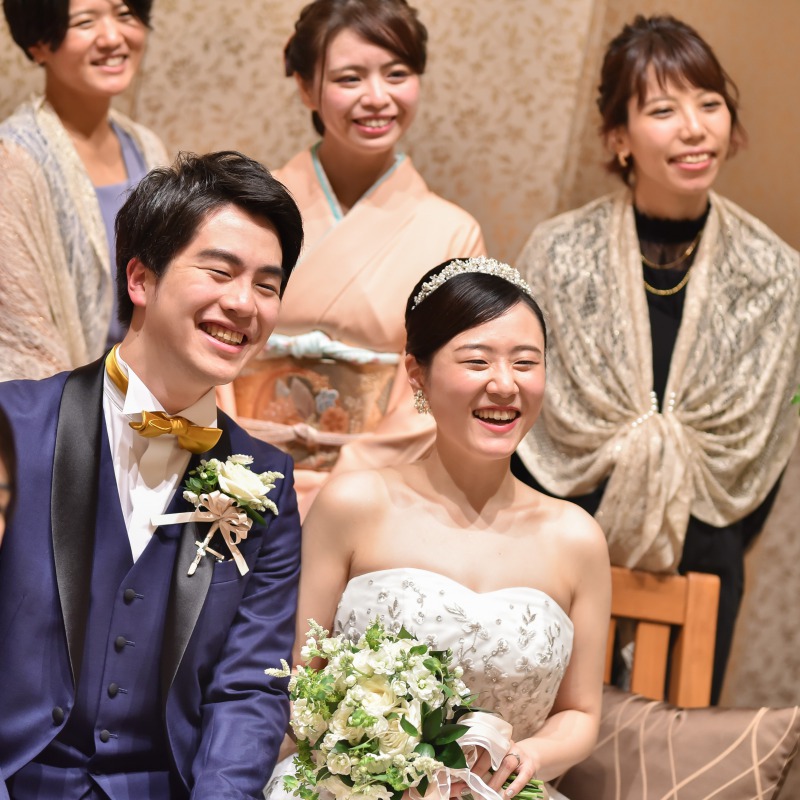 結婚式を挙げたことは、人生の中で一番の思い出となりました。当日はあっという間でしたが、久しぶりに会う友人や親戚が、披露宴の合間に絶え間なく席まで遊びに来てくれて、沢山の方々にお祝いの言葉をもらい、こんなに幸せなことはないと感動の連続でした。なによりも、両親の嬉しそうな表情を見て、本当に結婚式を挙げてよかったと、心から思いました。料理やスピーチ、演出やウェルカムグッズなど、全てが思っていた通りに運び、二人の目指していた“アットホームで笑顔の絶えない結婚式”は大成功だったと思います。披露宴終了後の見送りの時間に参列者の方が口々に「良い式だったよ!」「感動した!」楽しかった!」と言ってくれたときには、大変な準備を乗り越えて当日を迎えることができた喜びをかみしめました。