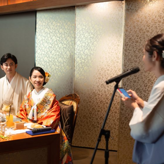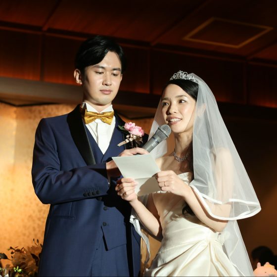 明確な披露宴イメージが無いままフェアに参加し、KOTOWA鎌倉の魅力に触れ、フェア担当さんの溢れ出る熱量にて即決、その後はKOTOWA鎌倉とスマイル愛たっぷりのプランナーさんと各部門スタッフさんに沢山のサポートをいただき、無事スマイル当日を迎えることができました。スマイル当日は瞬きのように一瞬で、まるで夢を見ていたかと思うほどでした。緊張で進行など頭から抜け落ちても、常に万全な体制でスタッフさんが付いてくださったので安心して全てをお任せできました。中でも驚いたのは、再入場の待機をしていた新郎が軽い咳をしたところ、こちらから声をかけるより早くかつ飲みやすい状態でお水をご用意いただいたことです。また私たちへのサプライズとして、フェアで初めて訪れた際にいただいた思い出のジュースを特別にご用意くださったり、更にはそのグラスに新婦が大好きなキャラクターが描かれていたりと、私たち自身が、プランナーさんやスタッフの皆さんから温かかく愛の詰まった「おもてなし」をしていただき感謝してもしきれません。人生の中で大事な1日をKOTOWA鎌倉にお任せできたことを幸せに思います。ありがとうございました。